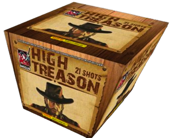 16 shots wanted for rebellion await their trial by fire. Silver tourbillions, whistles, and crackling hang high in the sky followed by brocade with red/white strobe. Red strobe mines lead off each shot. You be the judge!