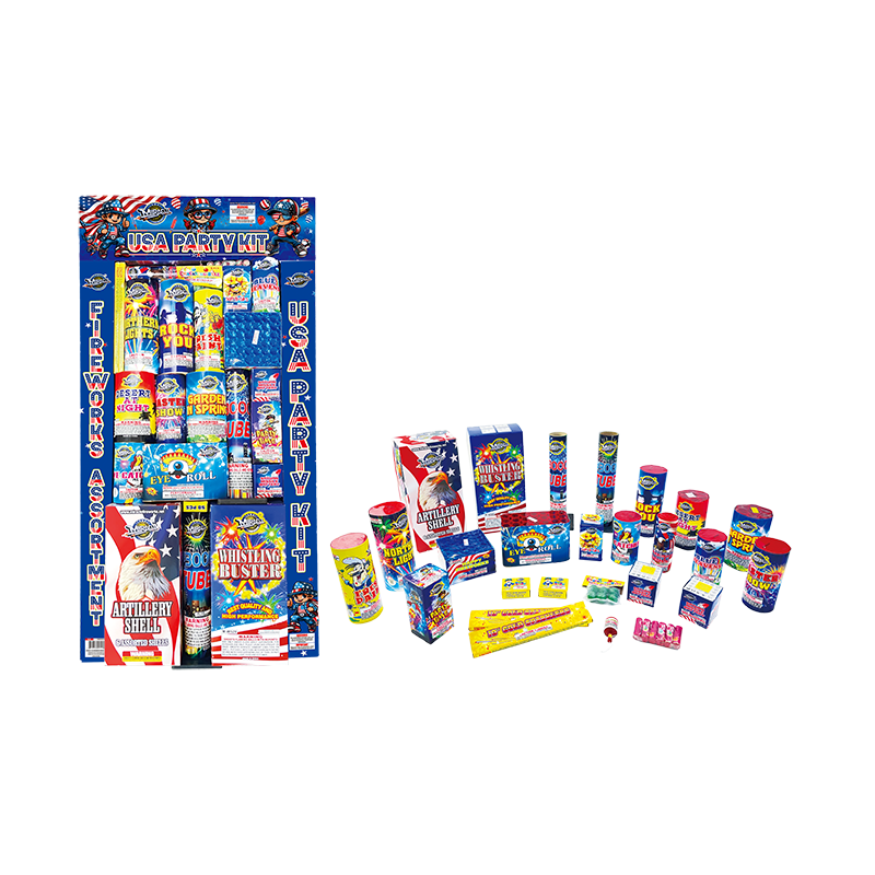 All in one big premium assortment. It consists of artillery shells, single aerial tubes, cakes, fountains, novelties and small stuffs.